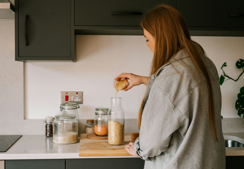Et organiseret køkken må gerne være pænt at se på. Vælg beholdere og opbevaringsløsninger, der passer til din stil – glas, metal, bambus eller plast. Det gør det både funktionelt og indbydende.